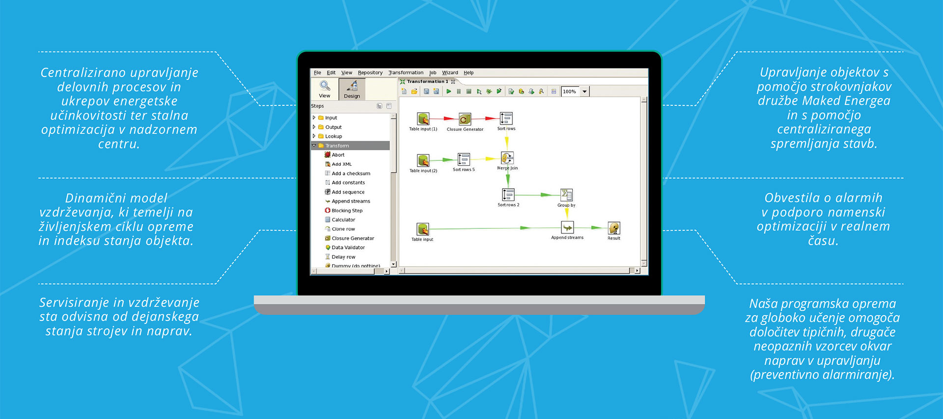 Maked Energea svojega dela s tem še ne konča. Algoritmi naprednega programskega paketa omogočijo stalno izboljševanje energetske učinkovitosti. Skupaj s tehničnim in z energetskim strokovnim znanjem to ustvarja dobičkonosno situacijo za stranke, s katerimi upravlja Maked Energea.